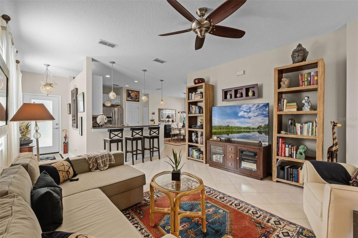 This residence offers an inviting lifestyle in the Saint Andrews area of the Country Club of Mount Dora. The home features ceramic tile flooring throughout, with the exception of laminate in the primary bedroom and carpeting in the second and third bedrooms. The primary bedroom is generously sized at 17×14, and the primary bathroom underwent a renovation in 2024, which included the addition of a double shower with seamless glass doors and new tile flooring, resulting in a stunning space. Additional enhancements include a new air conditioning system, hot water heater, and range, all installed in 2021, along with a fresh exterior paint job completed the same year. The open floor plan, combined with split bedroom arrangements, makes it ideal for entertaining. A charming screened back porch provides a perfect spot to relax during cooler evenings, surrounded by hedges for added privacy. The kitchen and both bathrooms boast granite countertops. The kitchen has a closet pantry, and all appliances are stainless steel, while the adjacent dining area features a lovely window that allows for a flood of light into the kitchen as well. Residents can also take advantage of community amenities such as a pool, exercise equipment, and a private clubhouse. The property includes a two-car garage, a ceramic tile roof, sidewalks, and street lighting. If you are considering a home in Florida, this could be an excellent choice for homeownership.